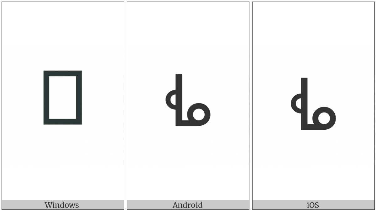The image below shows how the “Miao Letter Lhya” symbol might look like on different operating systems. If the font in which this web site is displayed does not contain the symbol and there is no fallback font able to render it, you can use the image below to get an idea of what it should look like.