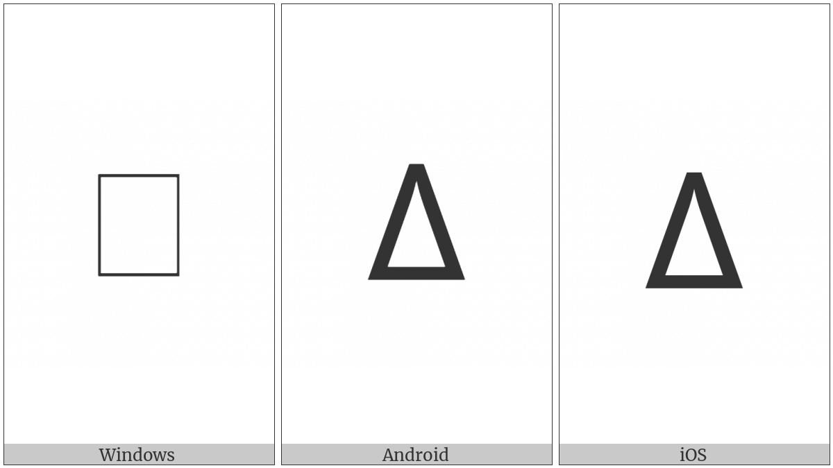 The image below shows how the “Miao Letter Tlha” symbol might look like on different operating systems. If the font in which this web site is displayed does not contain the symbol and there is no fallback font able to render it, you can use the image below to get an idea of what it should look like.