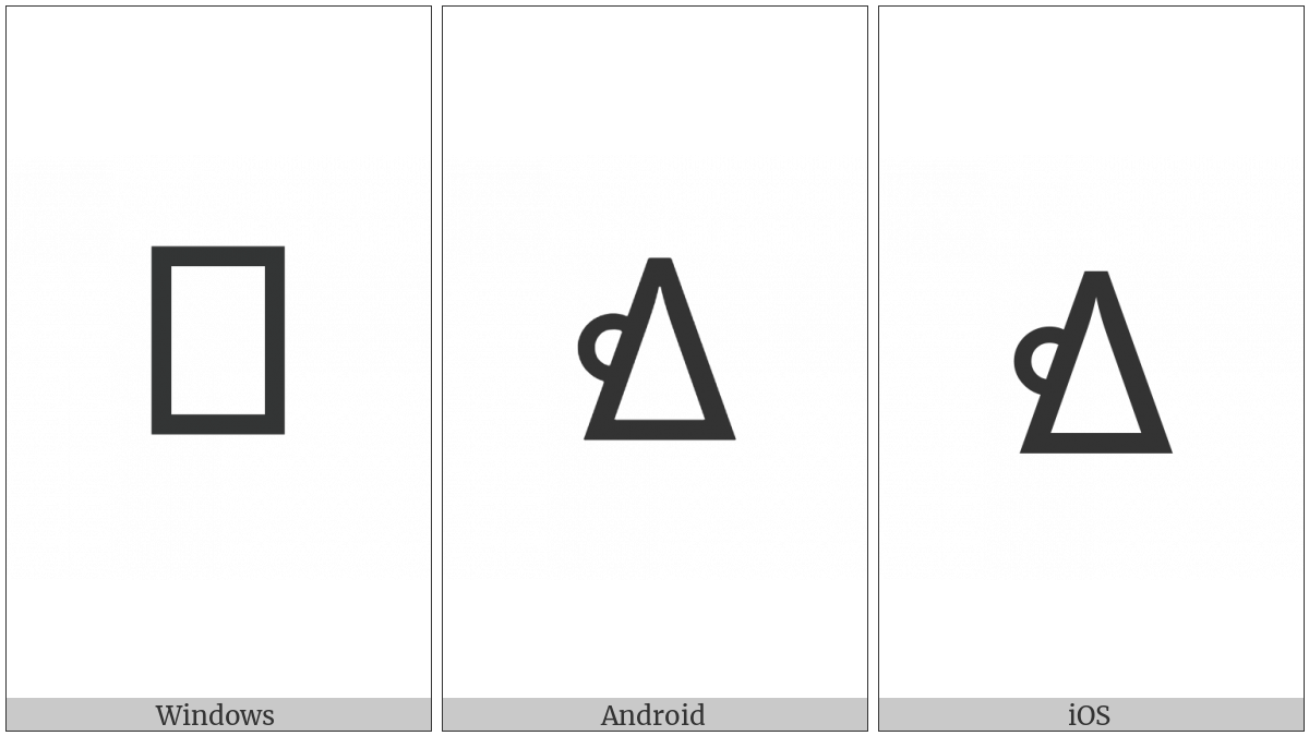 The image below shows how the “Miao Letter Dlha” symbol might look like on different operating systems. If the font in which this web site is displayed does not contain the symbol and there is no fallback font able to render it, you can use the image below to get an idea of what it should look like.
