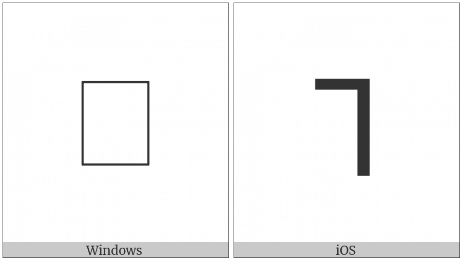 The image below shows how the “Miao Letter Ha” symbol might look like on different operating systems. If the font in which this web site is displayed does not contain the symbol and there is no fallback font able to render it, you can use the image below to get an idea of what it should look like.