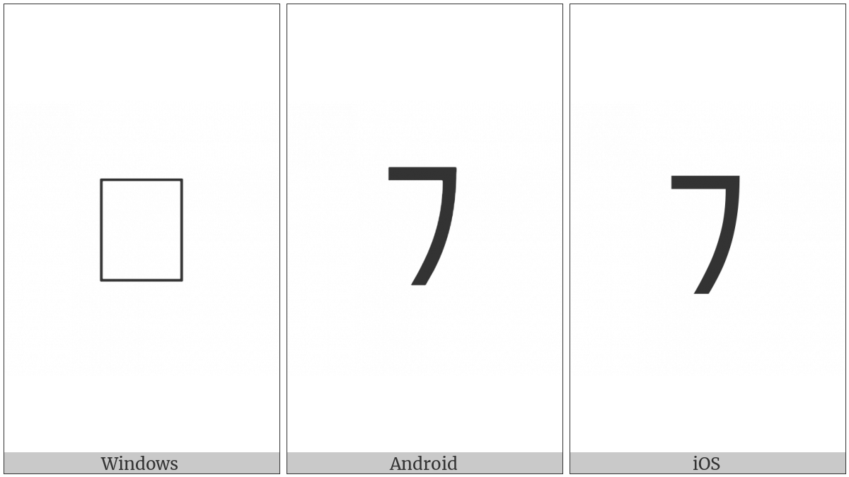 The image below shows how the “Miao Letter Ssa” symbol might look like on different operating systems. If the font in which this web site is displayed does not contain the symbol and there is no fallback font able to render it, you can use the image below to get an idea of what it should look like.