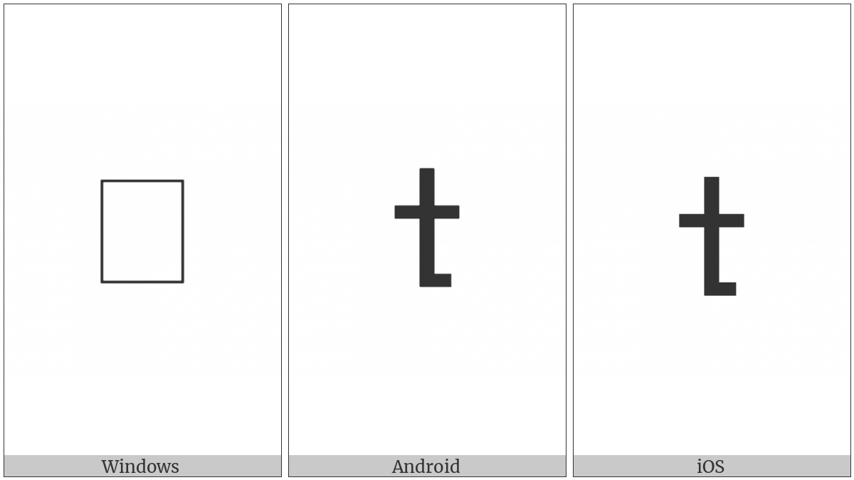 The image below shows how the “Miao Letter Yi Tsa” symbol might look like on different operating systems. If the font in which this web site is displayed does not contain the symbol and there is no fallback font able to render it, you can use the image below to get an idea of what it should look like.