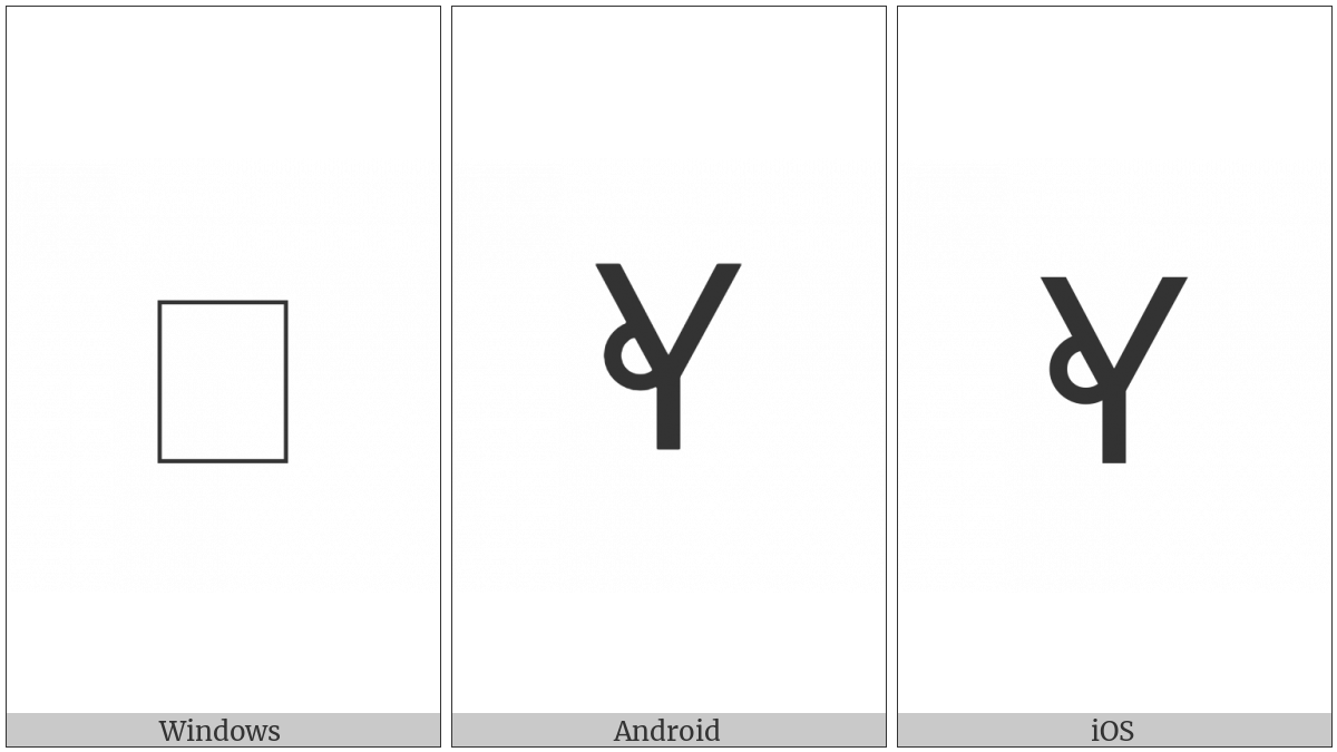 The image below shows how the “Miao Letter Hha” symbol might look like on different operating systems. If the font in which this web site is displayed does not contain the symbol and there is no fallback font able to render it, you can use the image below to get an idea of what it should look like.