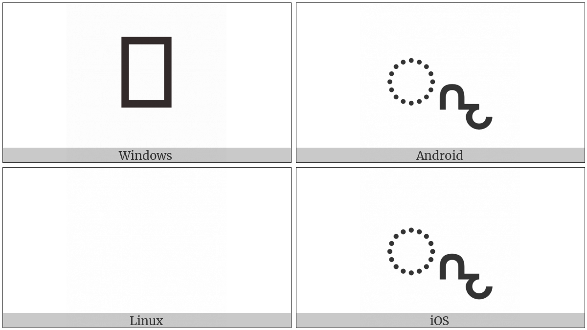 The image below shows how the “Miao Vowel Sign Ian” symbol might look like on different operating systems. If the font in which this web site is displayed does not contain the symbol and there is no fallback font able to render it, you can use the image below to get an idea of what it should look like.