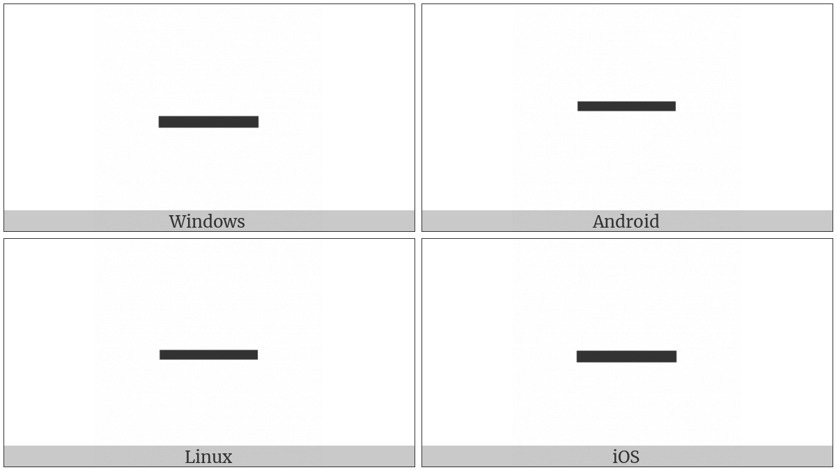 The image below shows how the “Box Drawings Light Horizontal” symbol might look like on different operating systems. If the font in which this web site is displayed does not contain the symbol and there is no fallback font able to render it, you can use the image below to get an idea of what it should look like.