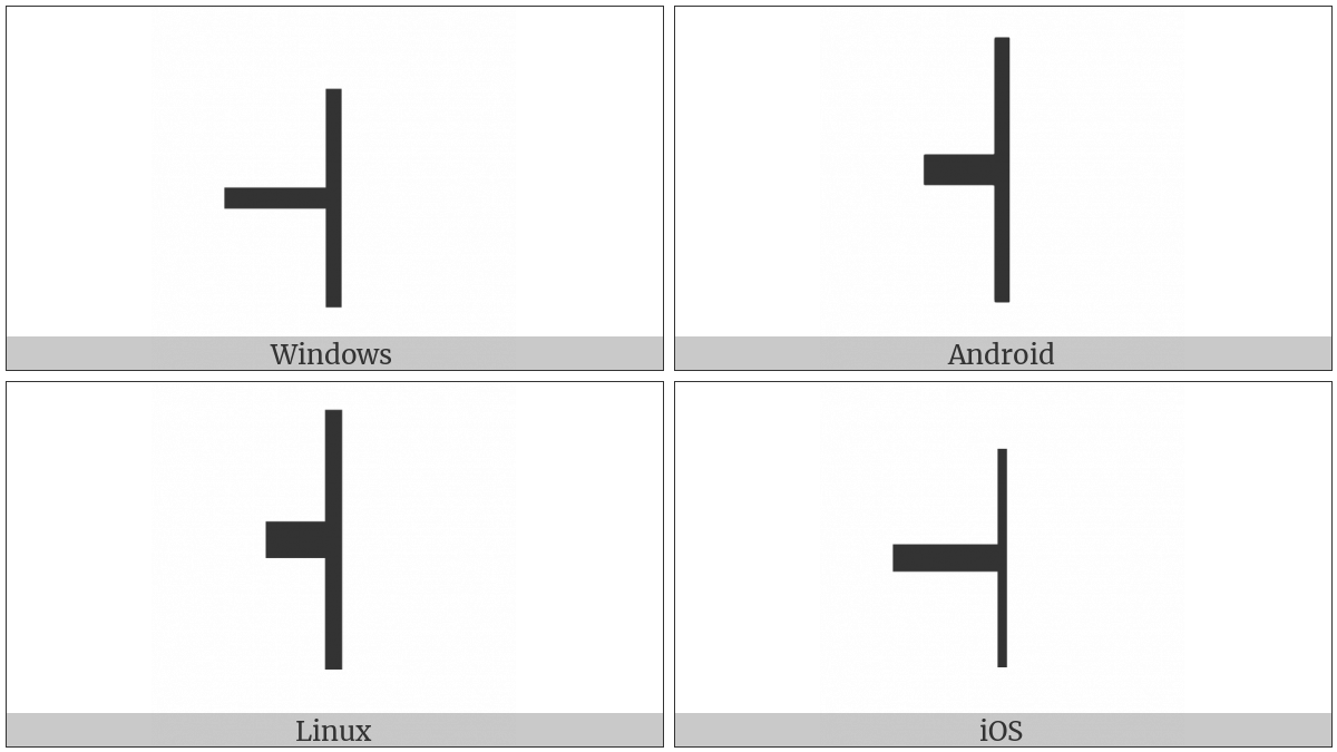 The image below shows how the “Box Drawings Vertical Light And Left Heavy” symbol might look like on different operating systems. If the font in which this web site is displayed does not contain the symbol and there is no fallback font able to render it, you can use the image below to get an idea of what it should look like.