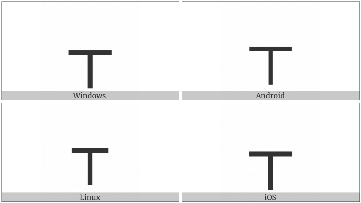 The image below shows how the “Box Drawings Light Down And Horizontal” symbol might look like on different operating systems. If the font in which this web site is displayed does not contain the symbol and there is no fallback font able to render it, you can use the image below to get an idea of what it should look like.