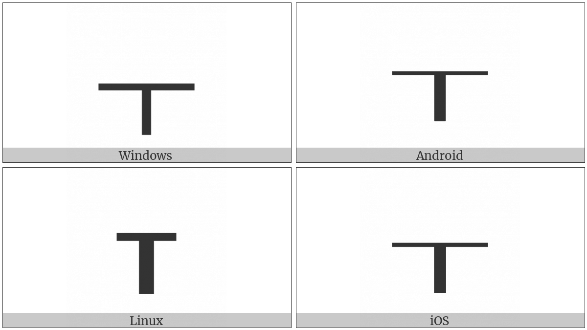 The image below shows how the “Box Drawings Down Heavy And Horizontal Light” symbol might look like on different operating systems. If the font in which this web site is displayed does not contain the symbol and there is no fallback font able to render it, you can use the image below to get an idea of what it should look like.