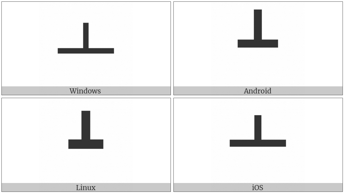 The image below shows how the “Box Drawings Heavy Up And Horizontal” symbol might look like on different operating systems. If the font in which this web site is displayed does not contain the symbol and there is no fallback font able to render it, you can use the image below to get an idea of what it should look like.