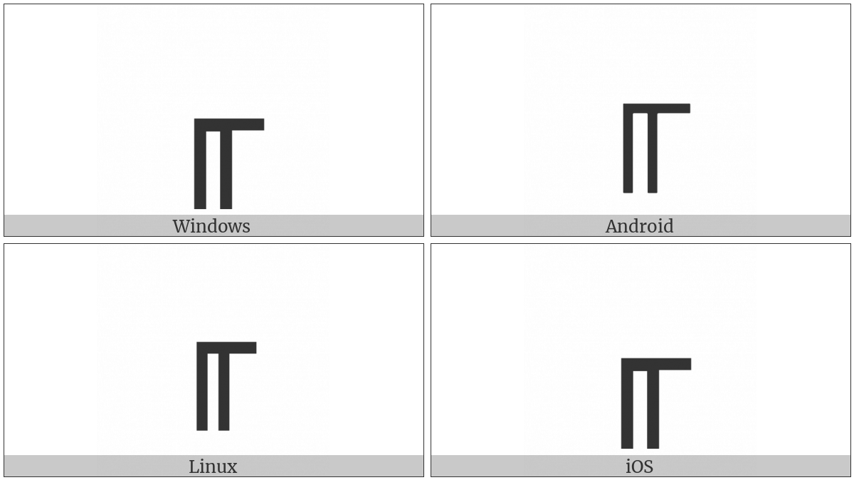The image below shows how the “Box Drawings Down Double And Right Single” symbol might look like on different operating systems. If the font in which this web site is displayed does not contain the symbol and there is no fallback font able to render it, you can use the image below to get an idea of what it should look like.