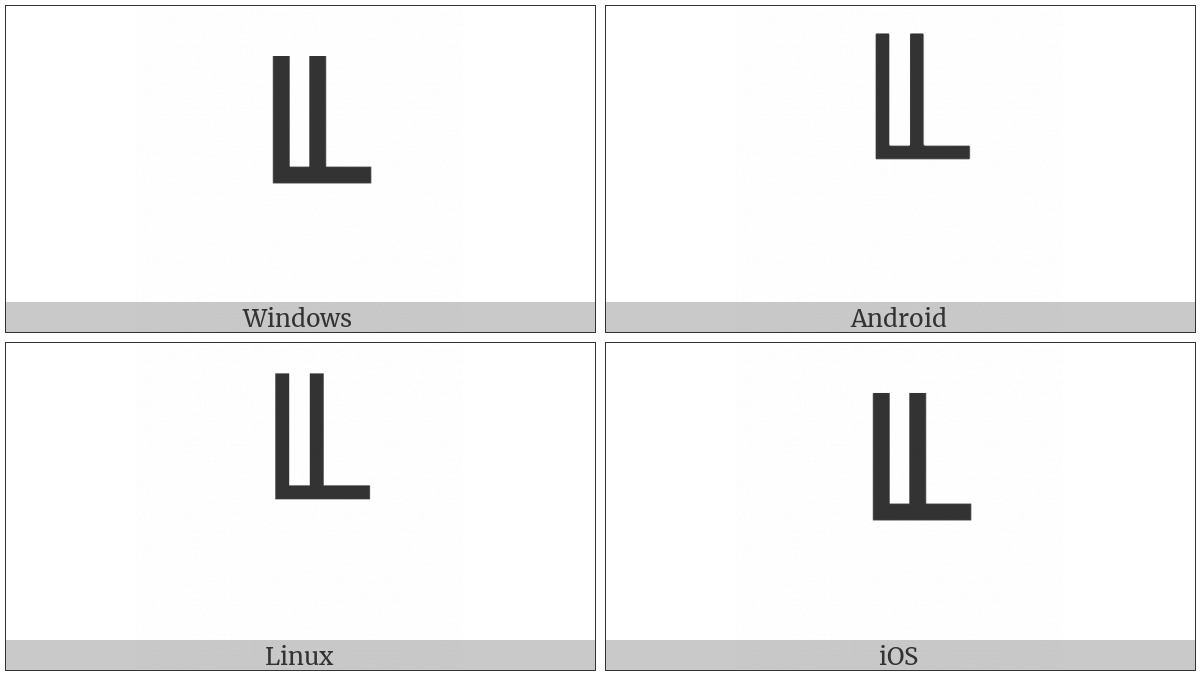 The image below shows how the “Box Drawings Up Double And Right Single” symbol might look like on different operating systems. If the font in which this web site is displayed does not contain the symbol and there is no fallback font able to render it, you can use the image below to get an idea of what it should look like.