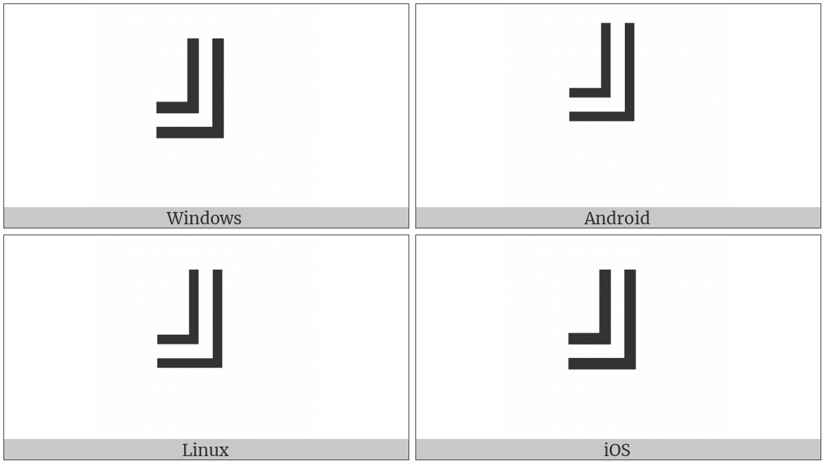 The image below shows how the “Box Drawings Double Up And Left” symbol might look like on different operating systems. If the font in which this web site is displayed does not contain the symbol and there is no fallback font able to render it, you can use the image below to get an idea of what it should look like.