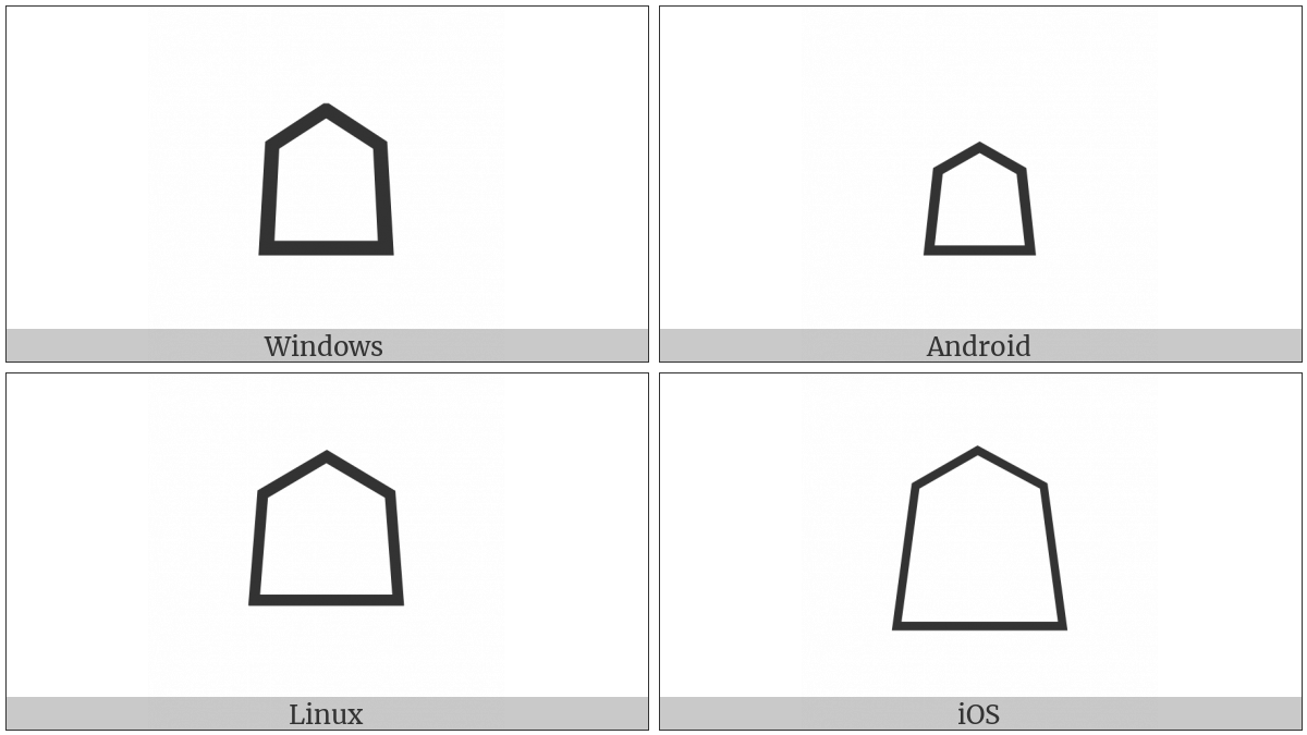 The image below shows how the “White Shogi Piece” symbol might look like on different operating systems. If the font in which this web site is displayed does not contain the symbol and there is no fallback font able to render it, you can use the image below to get an idea of what it should look like.