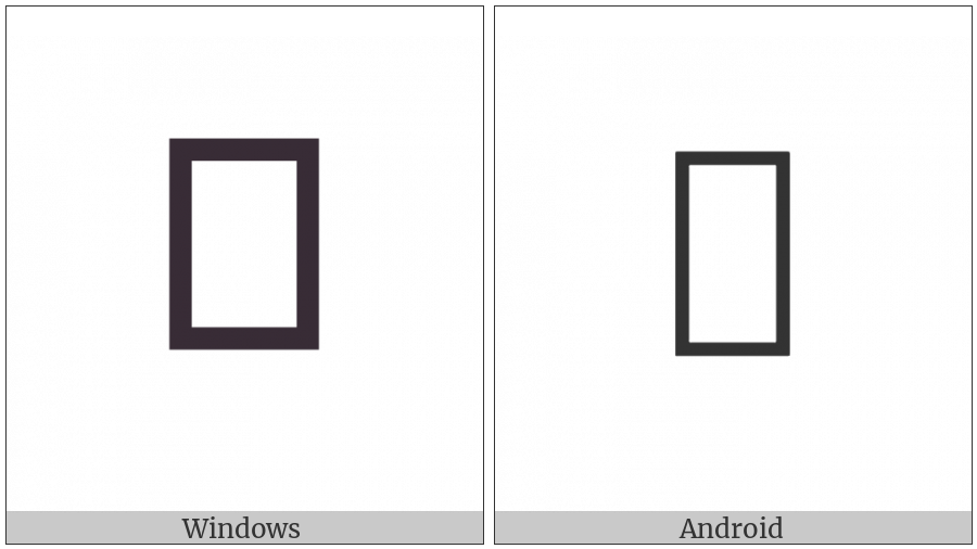 The image below shows how the “Tangut Component-014” symbol might look like on different operating systems. If the font in which this web site is displayed does not contain the symbol and there is no fallback font able to render it, you can use the image below to get an idea of what it should look like.