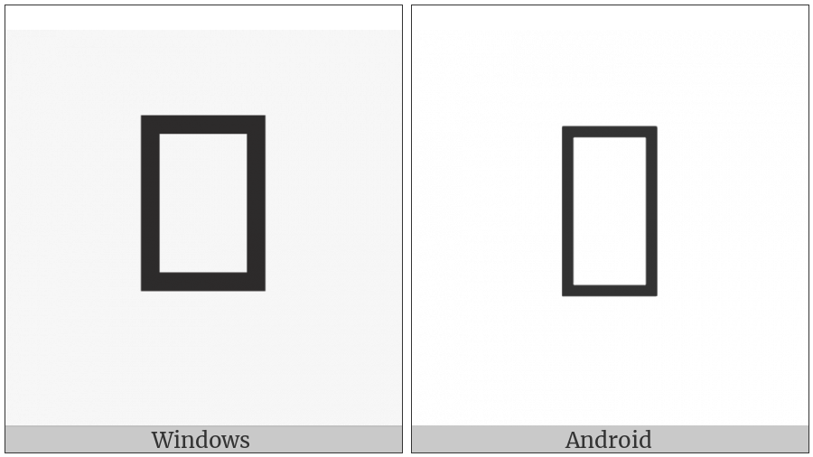 The image below shows how the “Tangut Component-035” symbol might look like on different operating systems. If the font in which this web site is displayed does not contain the symbol and there is no fallback font able to render it, you can use the image below to get an idea of what it should look like.