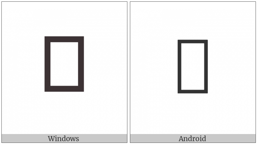 The image below shows how the “Tangut Component-045” symbol might look like on different operating systems. If the font in which this web site is displayed does not contain the symbol and there is no fallback font able to render it, you can use the image below to get an idea of what it should look like.
