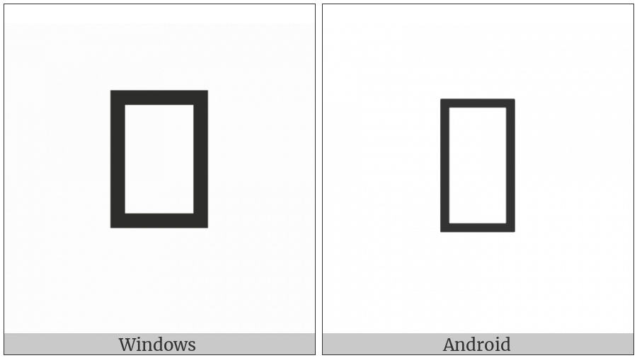 The image below shows how the “Tangut Component-046” symbol might look like on different operating systems. If the font in which this web site is displayed does not contain the symbol and there is no fallback font able to render it, you can use the image below to get an idea of what it should look like.