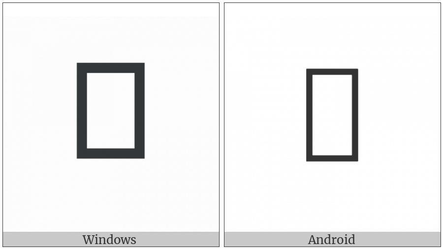 The image below shows how the “Tangut Component-048” symbol might look like on different operating systems. If the font in which this web site is displayed does not contain the symbol and there is no fallback font able to render it, you can use the image below to get an idea of what it should look like.