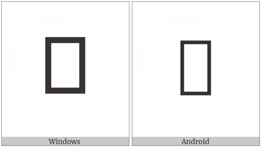 The image below shows how the “Tangut Component-078” symbol might look like on different operating systems. If the font in which this web site is displayed does not contain the symbol and there is no fallback font able to render it, you can use the image below to get an idea of what it should look like.