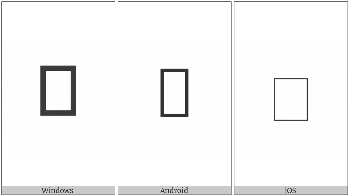 The image below shows how the “Tangut Component-111” symbol might look like on different operating systems. If the font in which this web site is displayed does not contain the symbol and there is no fallback font able to render it, you can use the image below to get an idea of what it should look like.