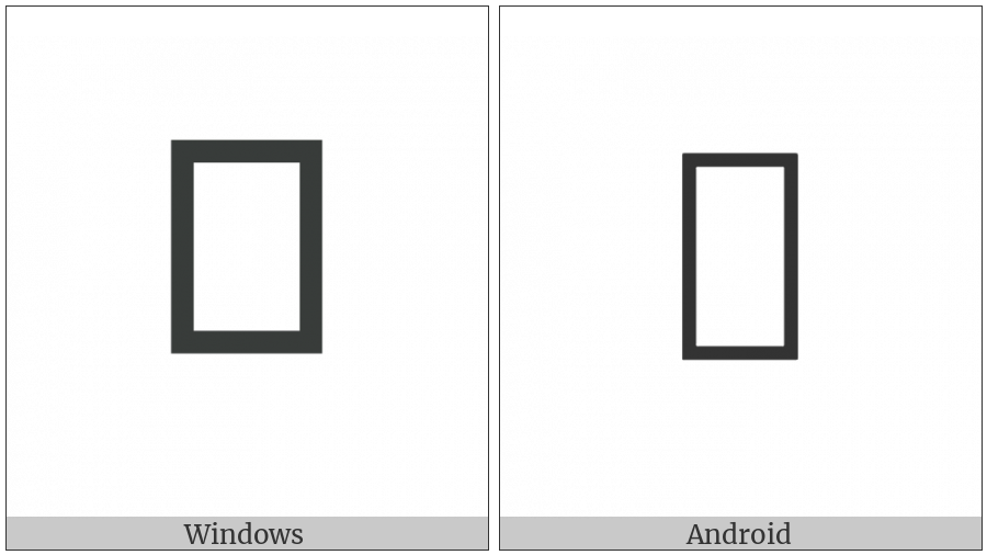 The image below shows how the “Tangut Component-391” symbol might look like on different operating systems. If the font in which this web site is displayed does not contain the symbol and there is no fallback font able to render it, you can use the image below to get an idea of what it should look like.