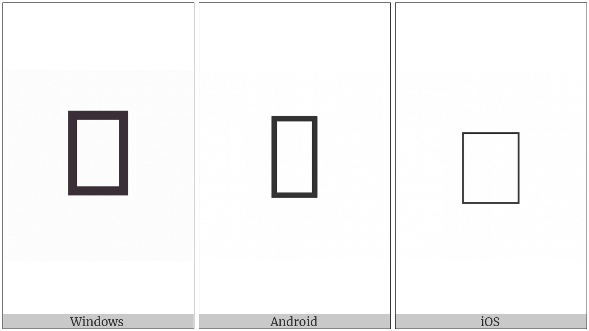 The image below shows how the “Tangut Component-394” symbol might look like on different operating systems. If the font in which this web site is displayed does not contain the symbol and there is no fallback font able to render it, you can use the image below to get an idea of what it should look like.