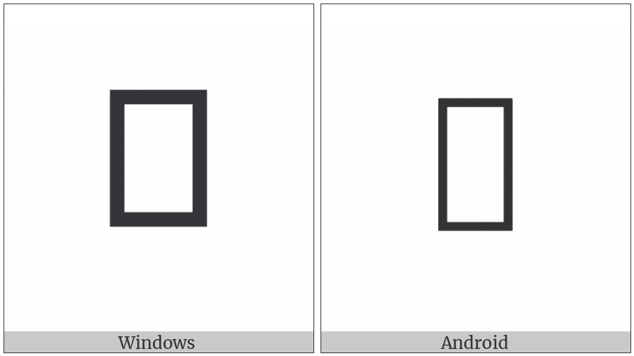 The image below shows how the “Tangut Component-400” symbol might look like on different operating systems. If the font in which this web site is displayed does not contain the symbol and there is no fallback font able to render it, you can use the image below to get an idea of what it should look like.