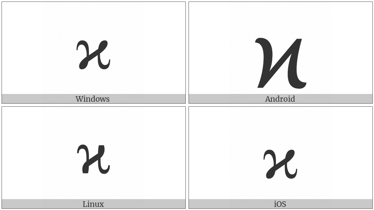The image below shows how the “Greek Kappa Symbol” symbol might look like on different operating systems. If the font in which this web site is displayed does not contain the symbol and there is no fallback font able to render it, you can use the image below to get an idea of what it should look like.