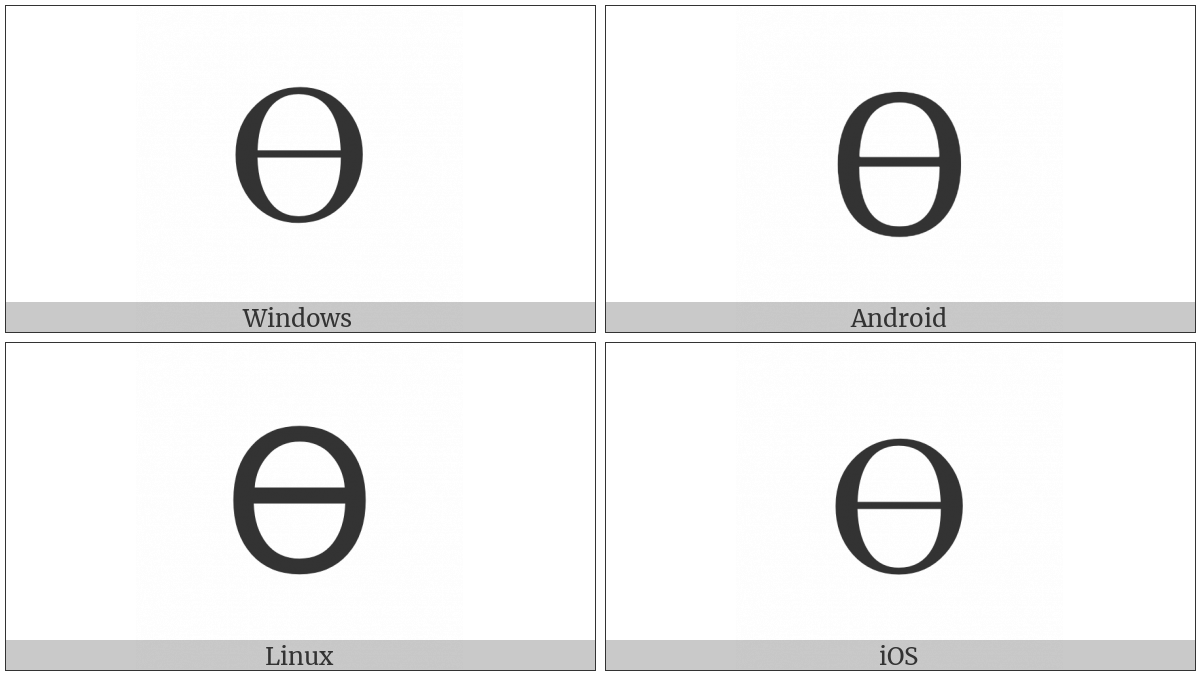 The image below shows how the “Greek Capital Theta Symbol” symbol might look like on different operating systems. If the font in which this web site is displayed does not contain the symbol and there is no fallback font able to render it, you can use the image below to get an idea of what it should look like.
