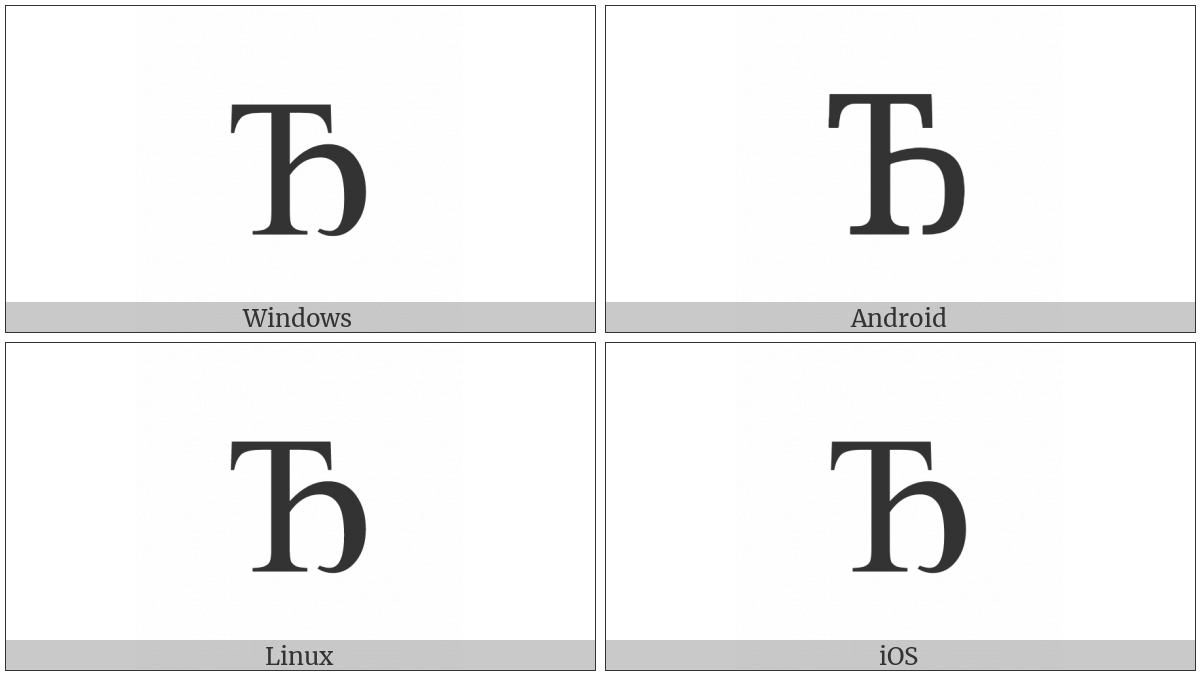 The image below shows how the “Cyrillic Capital Letter Dje” symbol might look like on different operating systems. If the font in which this web site is displayed does not contain the symbol and there is no fallback font able to render it, you can use the image below to get an idea of what it should look like.