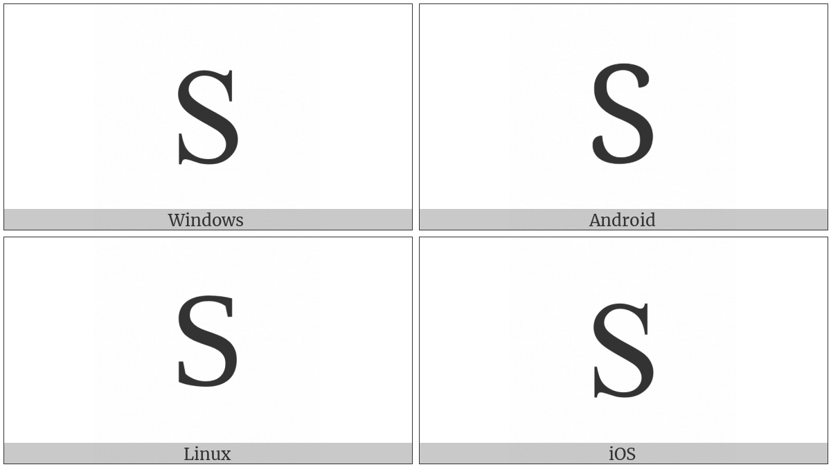 The image below shows how the “Cyrillic Capital Letter Dze” symbol might look like on different operating systems. If the font in which this web site is displayed does not contain the symbol and there is no fallback font able to render it, you can use the image below to get an idea of what it should look like.