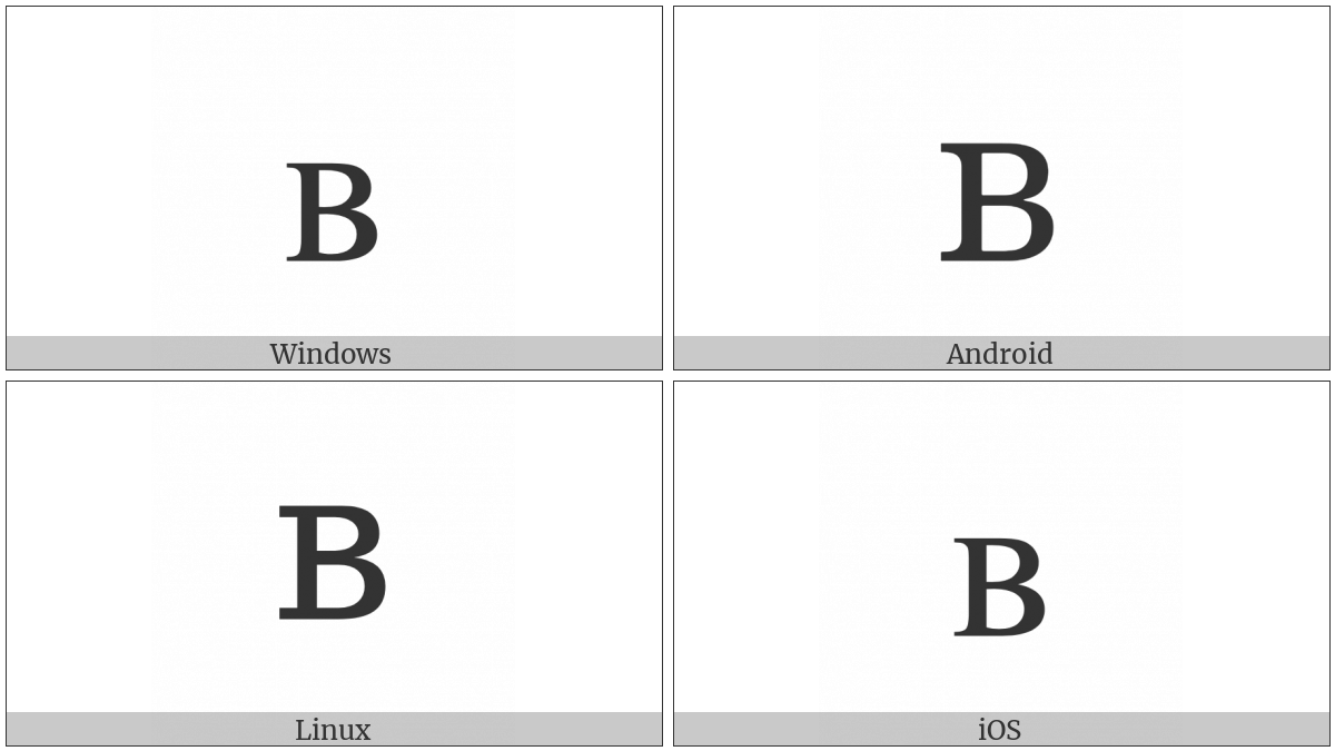 The image below shows how the “Cyrillic Small Letter Ve” symbol might look like on different operating systems. If the font in which this web site is displayed does not contain the symbol and there is no fallback font able to render it, you can use the image below to get an idea of what it should look like.