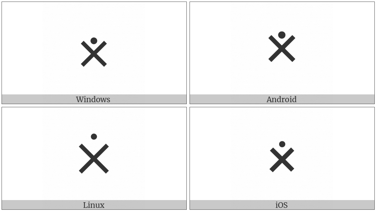 The image below shows how the “Multiplication Sign With Dot Above” symbol might look like on different operating systems. If the font in which this web site is displayed does not contain the symbol and there is no fallback font able to render it, you can use the image below to get an idea of what it should look like.