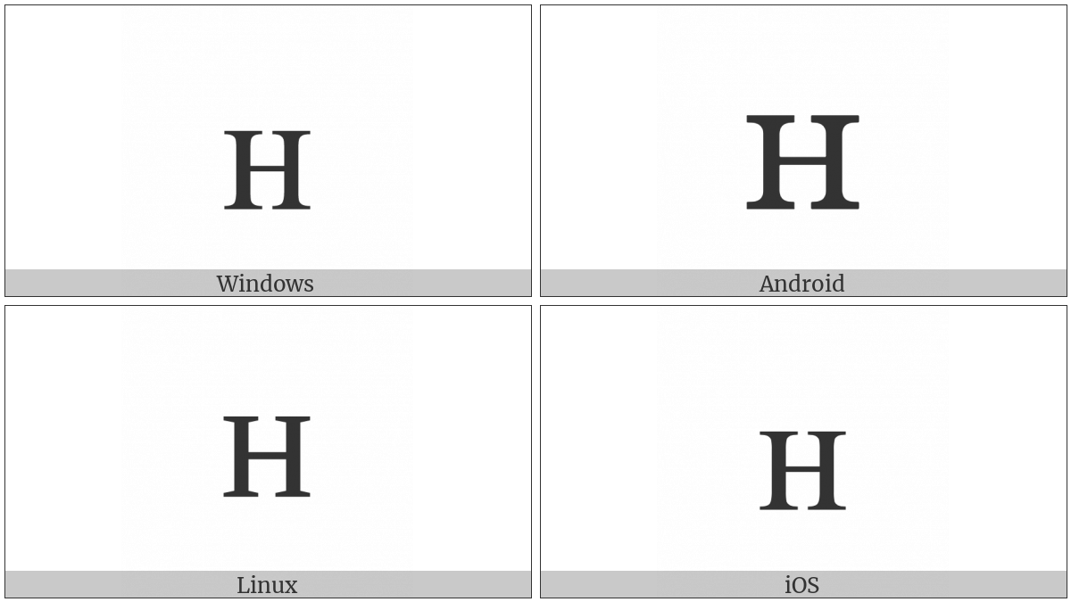 The image below shows how the “Cyrillic Small Letter En” symbol might look like on different operating systems. If the font in which this web site is displayed does not contain the symbol and there is no fallback font able to render it, you can use the image below to get an idea of what it should look like.