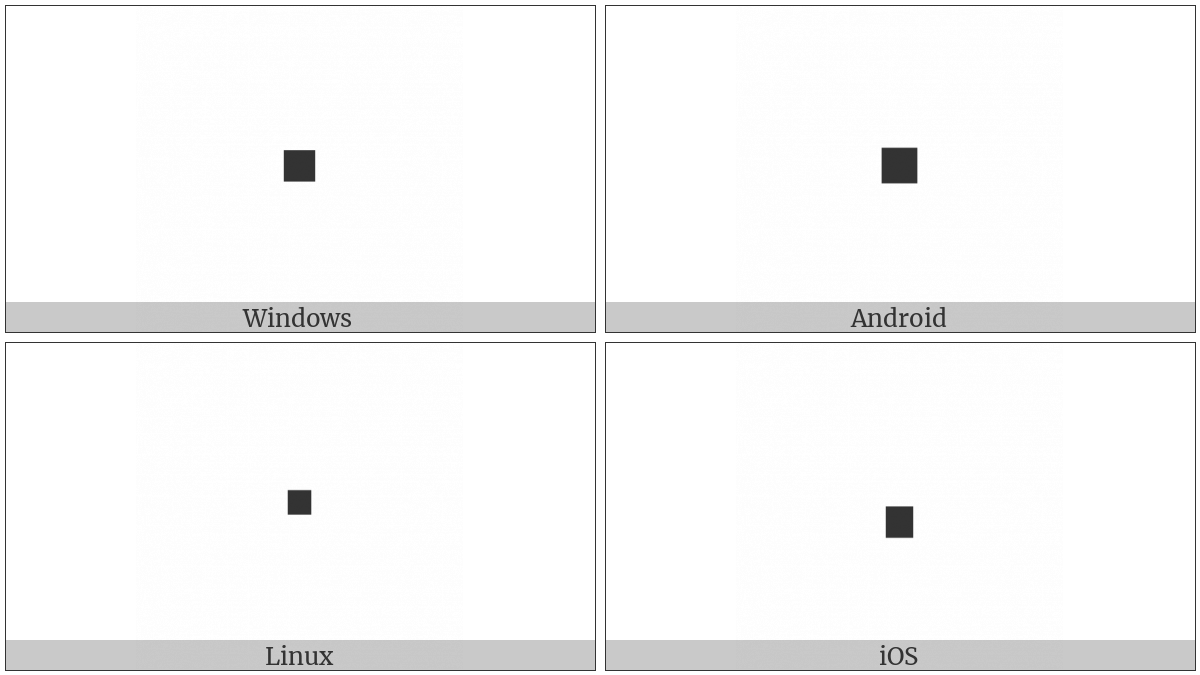 The image below shows how the “Black Very Small Square” symbol might look like on different operating systems. If the font in which this web site is displayed does not contain the symbol and there is no fallback font able to render it, you can use the image below to get an idea of what it should look like.