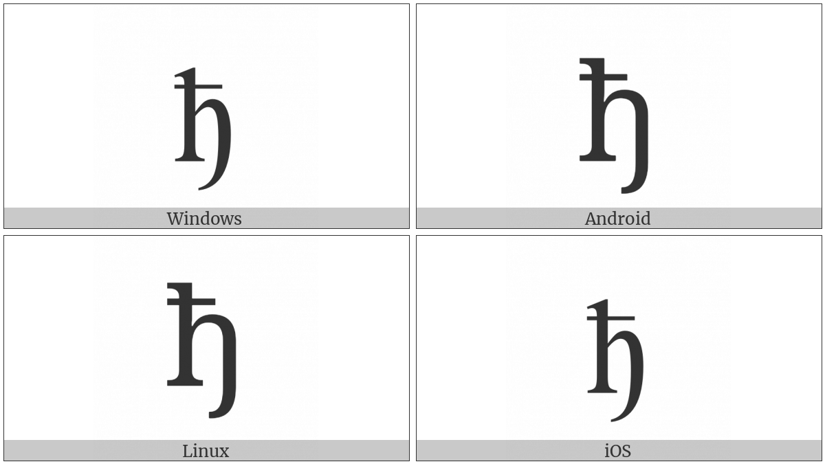 The image below shows how the “Cyrillic Small Letter Dje” symbol might look like on different operating systems. If the font in which this web site is displayed does not contain the symbol and there is no fallback font able to render it, you can use the image below to get an idea of what it should look like.