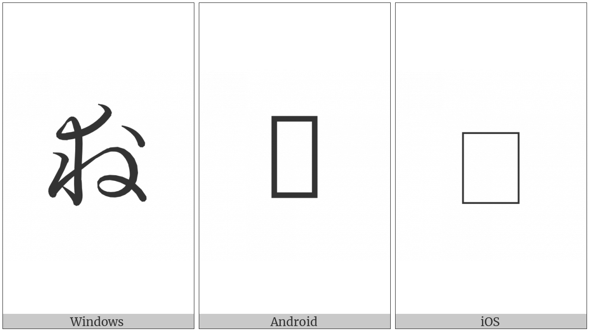 The image below shows how the “Hentaigana Letter Ku-7” symbol might look like on different operating systems. If the font in which this web site is displayed does not contain the symbol and there is no fallback font able to render it, you can use the image below to get an idea of what it should look like.
