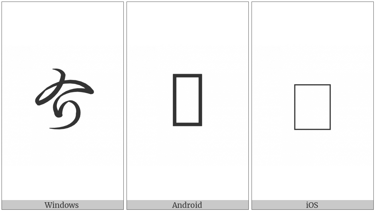 The image below shows how the “Hentaigana Letter Ke-1” symbol might look like on different operating systems. If the font in which this web site is displayed does not contain the symbol and there is no fallback font able to render it, you can use the image below to get an idea of what it should look like.