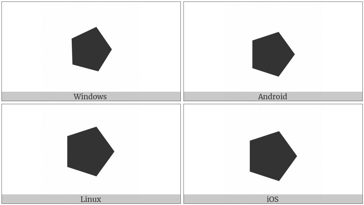 The image below shows how the “Black Right-Pointing Pentagon” symbol might look like on different operating systems. If the font in which this web site is displayed does not contain the symbol and there is no fallback font able to render it, you can use the image below to get an idea of what it should look like.