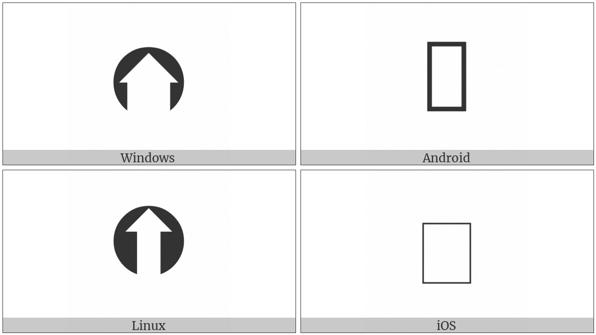 The image below shows how the “Upwards Black Circled White Arrow” symbol might look like on different operating systems. If the font in which this web site is displayed does not contain the symbol and there is no fallback font able to render it, you can use the image below to get an idea of what it should look like.