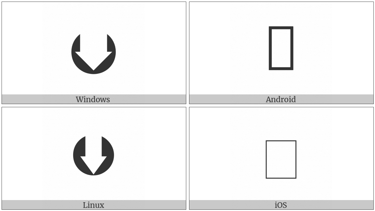 The image below shows how the “Downwards Black Circled White Arrow” symbol might look like on different operating systems. If the font in which this web site is displayed does not contain the symbol and there is no fallback font able to render it, you can use the image below to get an idea of what it should look like.