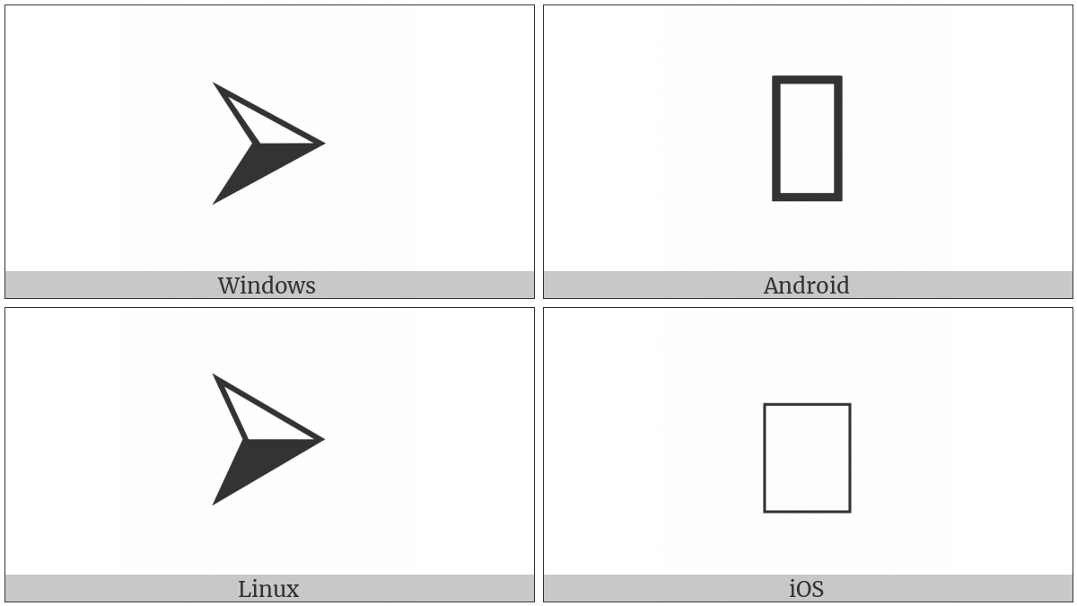 “Three-D Top-Lighted Rightwards Equilateral Arrowhead” on various operating systems