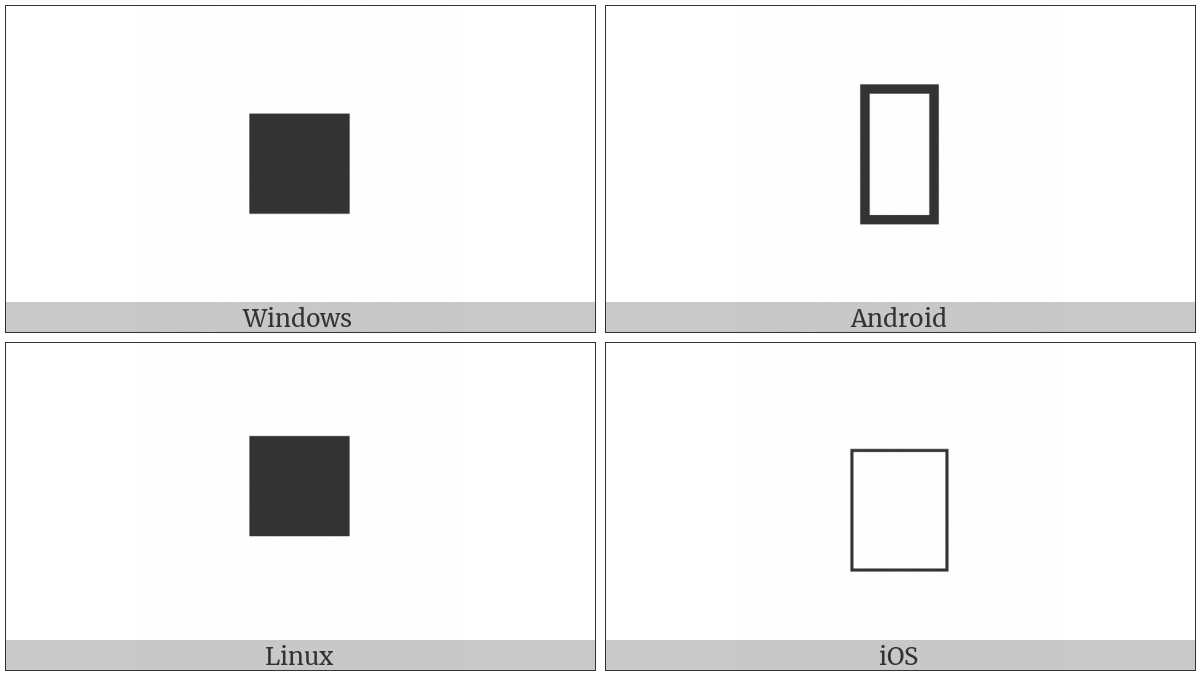 The image below shows how the “Black Square Centred” symbol might look like on different operating systems. If the font in which this web site is displayed does not contain the symbol and there is no fallback font able to render it, you can use the image below to get an idea of what it should look like.
