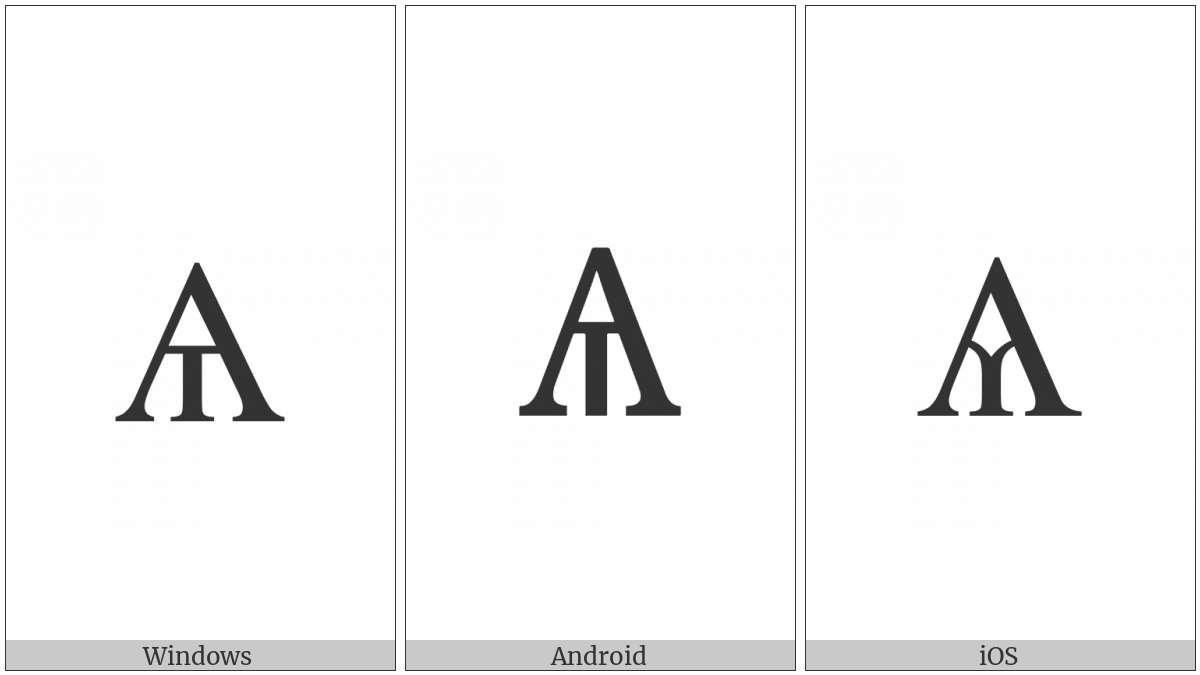 The image below shows how the “Cyrillic Capital Letter Little Yus” symbol might look like on different operating systems. If the font in which this web site is displayed does not contain the symbol and there is no fallback font able to render it, you can use the image below to get an idea of what it should look like.