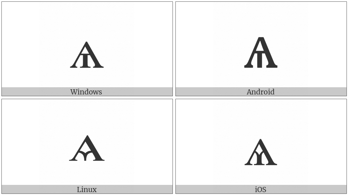 The image below shows how the “Cyrillic Small Letter Little Yus” symbol might look like on different operating systems. If the font in which this web site is displayed does not contain the symbol and there is no fallback font able to render it, you can use the image below to get an idea of what it should look like.