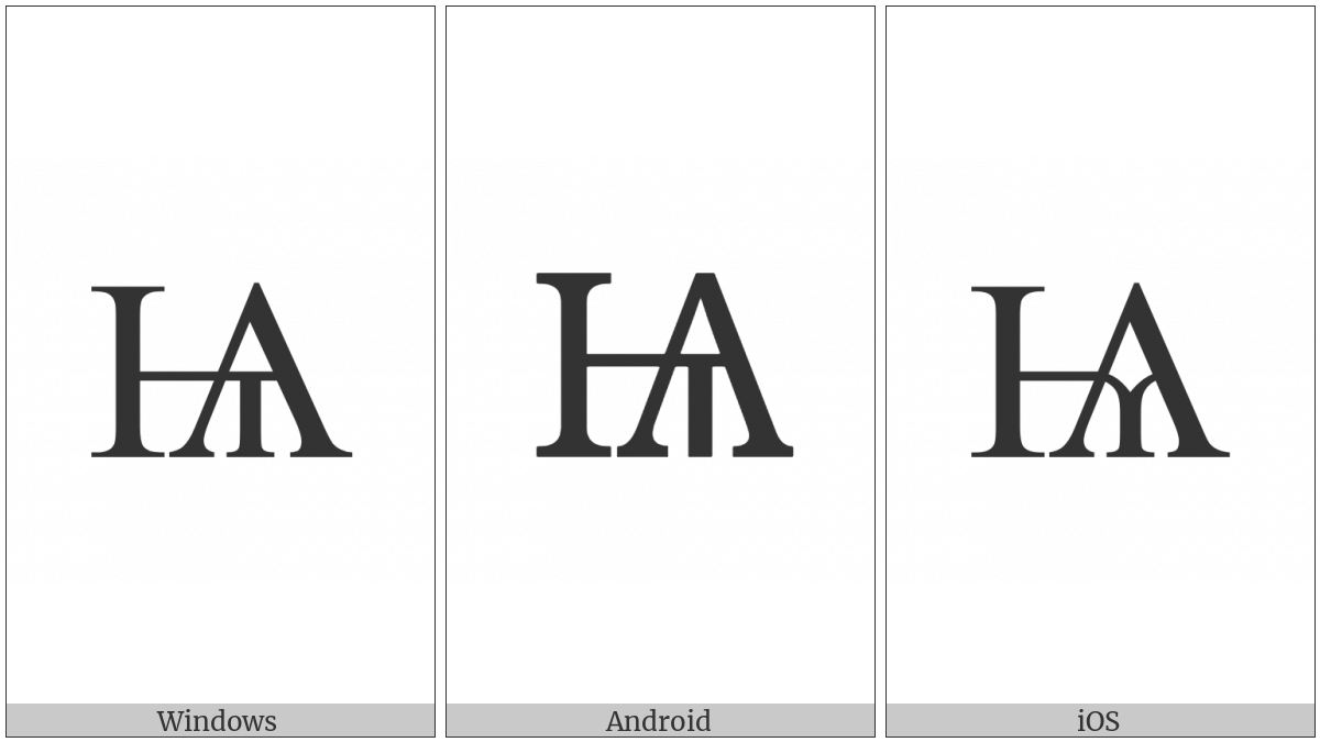 The image below shows how the “Cyrillic Capital Letter Iotified Little Yus” symbol might look like on different operating systems. If the font in which this web site is displayed does not contain the symbol and there is no fallback font able to render it, you can use the image below to get an idea of what it should look like.