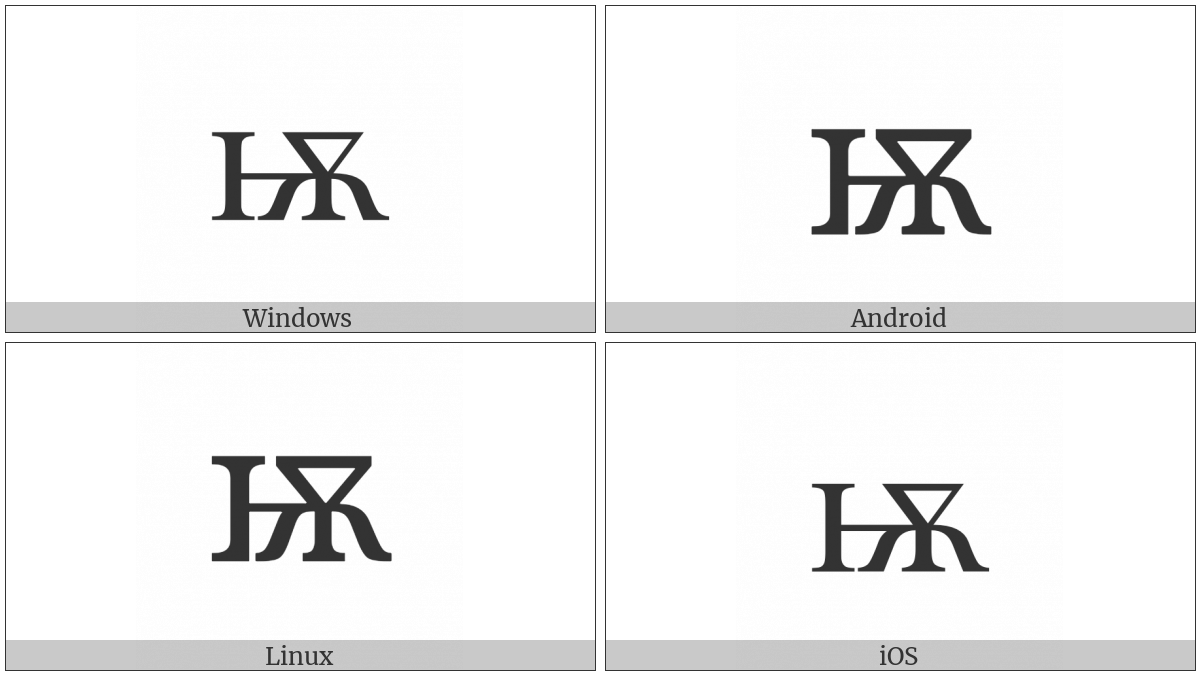 The image below shows how the “Cyrillic Small Letter Iotified Big Yus” symbol might look like on different operating systems. If the font in which this web site is displayed does not contain the symbol and there is no fallback font able to render it, you can use the image below to get an idea of what it should look like.
