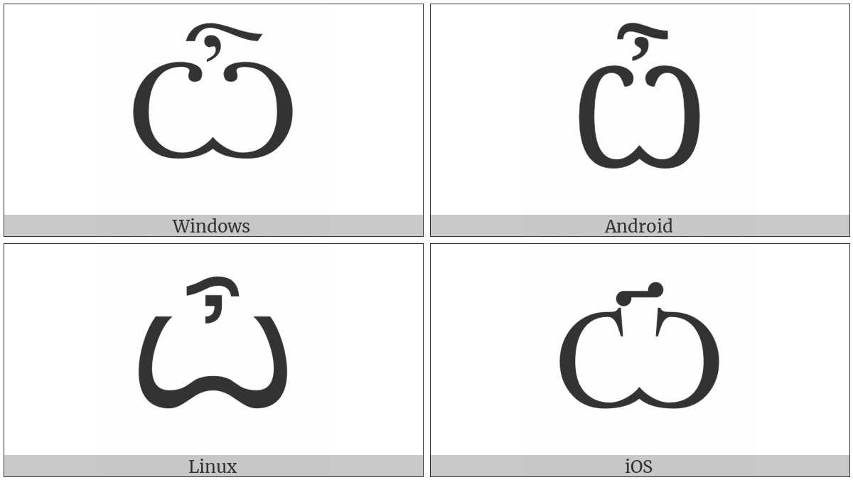 The image below shows how the “Cyrillic Capital Letter Omega With Titlo” symbol might look like on different operating systems. If the font in which this web site is displayed does not contain the symbol and there is no fallback font able to render it, you can use the image below to get an idea of what it should look like.