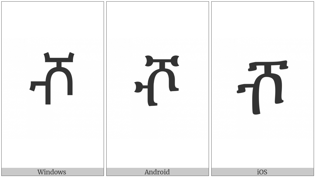 The image below shows how the “Ethiopic Syllable Shoa” symbol might look like on different operating systems. If the font in which this web site is displayed does not contain the symbol and there is no fallback font able to render it, you can use the image below to get an idea of what it should look like.