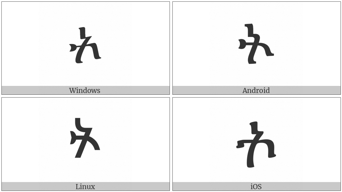 The image below shows how the “Ethiopic Syllable Glottal Oa” symbol might look like on different operating systems. If the font in which this web site is displayed does not contain the symbol and there is no fallback font able to render it, you can use the image below to get an idea of what it should look like.